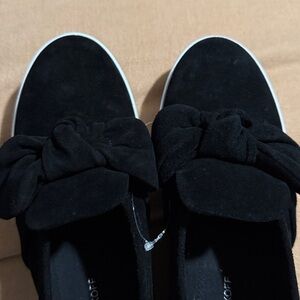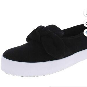 An oversize petal-shaped bow adorns the vamp of a comfortable, versatile sneaker set on an articulated platform sole. Colors): black oiled suede, black satin, cranberry satin, light blue denim, pale pink kic suede, red suede, white shiny calf. Brand: REBECCA MINKOFF. Style Name: Rebecca Minkoff Stacey Bow Platform Sneaker (Women).size 10.5 Like New without tag
