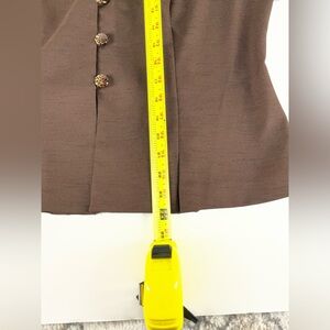 A sophisticated brown jacket by Danny & Nicole featuring a flattering peplum hem and a bold leopard print lining. Designed with short sleeves and a structured silhouette, this chic piece easily elevates any outfit. Perfect for business casual wear or an evening out.