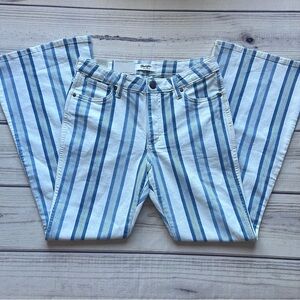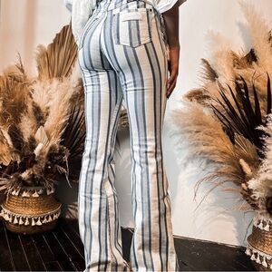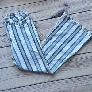Retro flare white & blue striped jeans