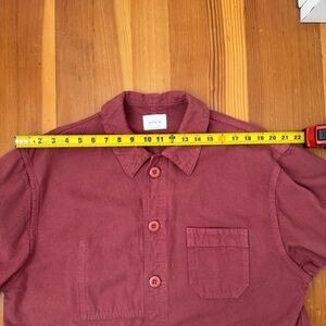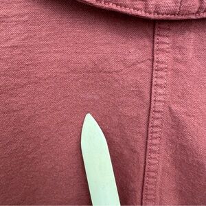 Stylish utility jacket by Doen. Features a deep red color. Includes multiple pockets and button closure. Perfect for layering.