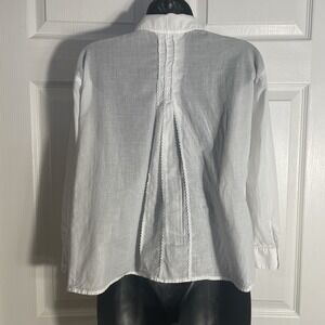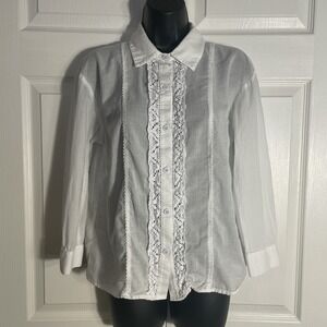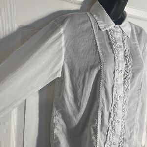 Cabi Shirt Women M White Lightweight Sheer Lace Trim Long Sleeve Whimsical Top
