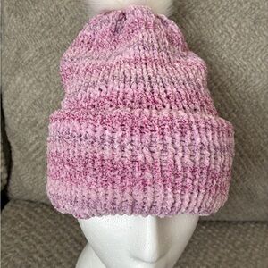 Stay cozy and stylish with this pink knitted beanie featuring a fluffy pom pom. Perfect for adding a touch of warmth and charm to your outfit. Super soft and comfy. Made with shades of light purple pink. Velour type yarn. So warm. Can be warm as a slouch hat or beanie Hand made by me. Hat is reversible and Pom Pom is removable.