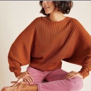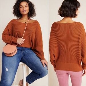 Anthropologie Karla boat neck burnt orange rust ribbed dolman sleeve sweater