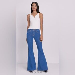 These low-rise jeans make an impression. With a retro-inspired silhouette and a vivid blue wash, they are fitted through the hips and thighs while the elongating leg leads to a bold flare. Made from our No Filter denim offering extra stretch, sculpt, and softness inspiring your most confident look yet, no filter required.