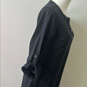 Garnet Hill Womens Breathable Linen Midi Roll Tab Long Sleeve Shirt Dress 00