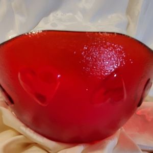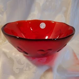 Red glass candy dish with hearts from Mosser Glass in Ohio... made in the USA! And BRAND NEW, but vintage. Had this in storage for years! 6 inches in diameter and stands 3 inches high. No chips,cracks or repairs.