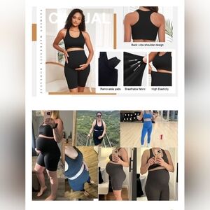 •The bra features a convenient removable bra pad, offering customizable support to adapt to your changing body. The maternity 2 piece outfit has a seamless design of both the bra and shorts, which ensures a smooth and irritation-free fit, giving you the confidence to embrace your pregnancy journey in style.