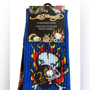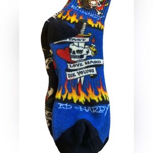 Bold Ed Hardy socks with striking skull and flame design. Perfect for a standout look.