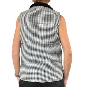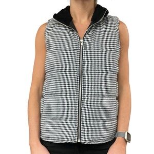 Staccato Women’s S Black White Houndstooth Knit Sherpa Collar Zipper Puffer Vest