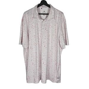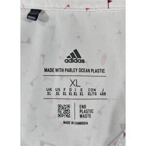 Adidas Primeblue Golf Polo XL White Burgundy Red Flag Print Parley Globe