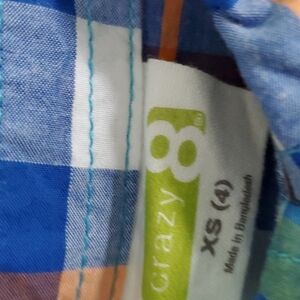 Three Crazy 8 Size 4 Shirts. Two pullover polo style and one button up. All excellent pre-loved condition. No known flaws. The plaid shirt may have never been worn.