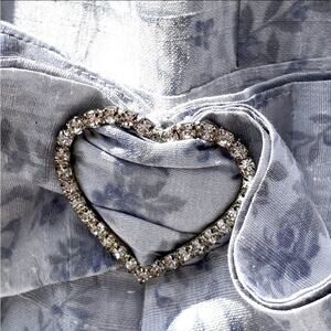 Loveshackfancy's Pearla Dress arrives in Dupioni silk slub with a vintage-inspired wreath print. Below a shirred scoop neckline, the bodice drapes to a fixed waist, adorned with an oversized bow and crystal heart embellishment. Puffed sleeves are shirred at top and narrow to a small cuff at the elbow. The mini skirt is fitted, letting out into two flounces.