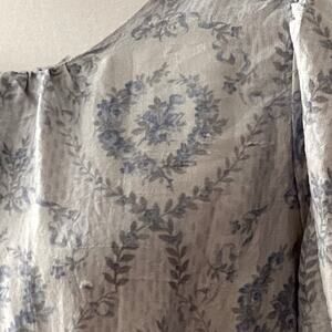 *The dress is high quality and stunning, and also has some wear and a few flaws noted and pictured. It is labeled a size 10, but based on approximate measurements listed as a size Small (Please see photos). It has been stitched in the back and has a small hole stitched over (the side zipper is still present). The stitching is coming undone. There are also a couple of small marks (one at the hip and one in the back), did not try to get out. A tiny fabric snag in the front, some extra knottiness (the fabric itself has natural knottiness throughout, but a couple of spots are more pronounced, and some lose threads behind the neckline) Even with theses flaws, it is a beautiful dress that can be worn as is or professionally altered and dry cleaned.