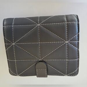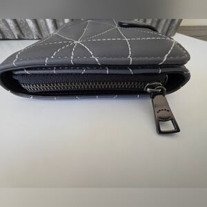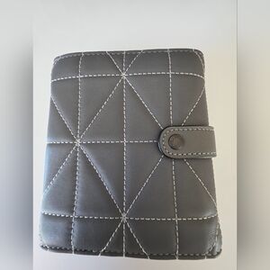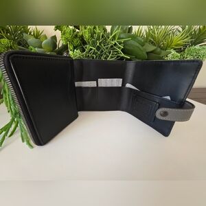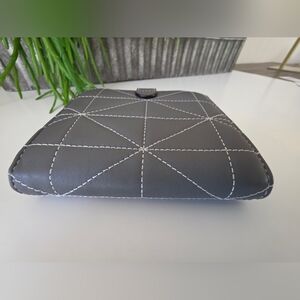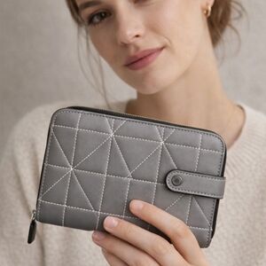Add a polished, everyday essential to your collection with this authentic Coach quilted leather large accordion zip wallet in a sleek Heather Grey with black trim. Crafted from soft, high-quality leather with signature quilting and contrast stitching, this is a refined, high-quality wallet made to last.