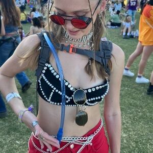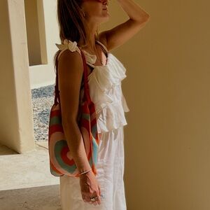 Features: Ruffled tiered design, tie straps, cropped fit, low back