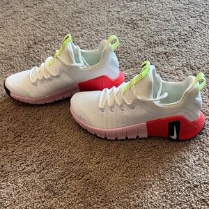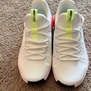 Stylish Nike women’s metcon sneaker. New and never worn! . White base with pink and red accents. Size 7