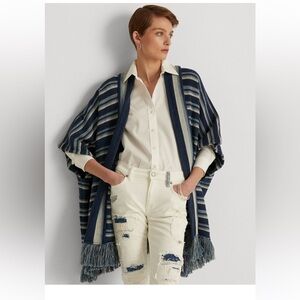 Lauren Ralph Lauren Fringe Trim Open Cardigan S/M EUC