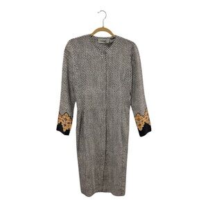 VTG Adrianna Papell Geometric Pattern Silk Button Up Dress Midi Size 6