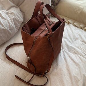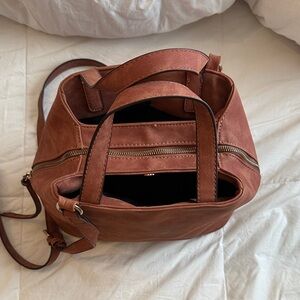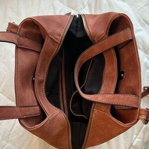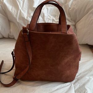 Slouchy vegan leather tote, in the perfect size to fit all your essentials.color is a soft rust. Smooth to the touch. Used once.