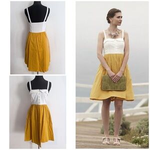 NWT Anthropologie Maeve Vappu Whote & Mustard Yellow Colorblock Retro Dress 2