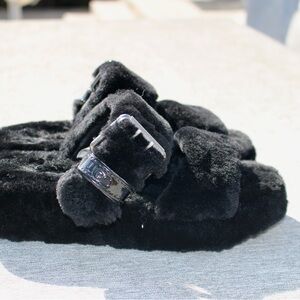 UGG Fuzz Yeah black sheepskin slipper slide sandals NEW Size 5