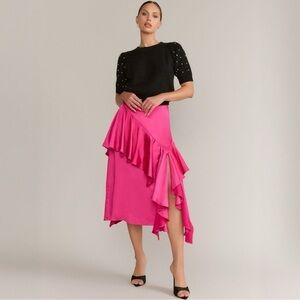 Endless Rose Satin Waterfall Magenta Midi Skirt Size Medium