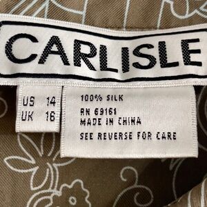 Vintage Carlisle 100% Silk Blouse Sz 14 Taupe Abstract Geometric Art Print