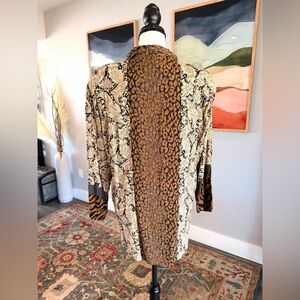 Stunning Carol Little vintage jacket that is truly a wearable work of art. This gorgeous, drapey piece features multiple layered fabrics with an eclectic mix of floral print, animal print, and dotted patterns, all coming together in classic Carol Little fashion.