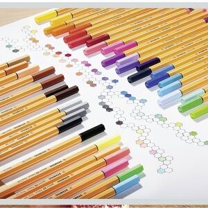 Set of vibrant fineliner pens. Perfect for art and writing. Includes multiple colors. Gently used. Some colors, like yellow missing.