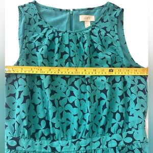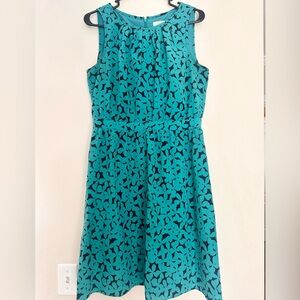 Stylish women's dress with a vibrant teal and black pattern. Ideal for casual wear. Comfortable and chic.