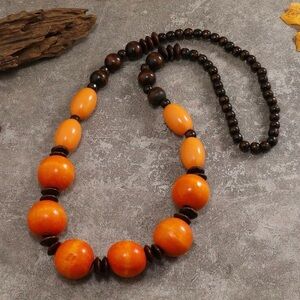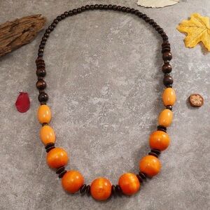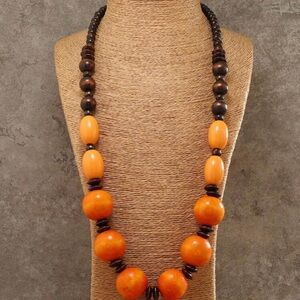 Handmade Bohemian Style Wooden Bead Long Necklace This stunning necklace features vibrant orange and rich brown beads, perfect for adding a pop of color to any outfit. Its elegant design makes it a versatile accessory for any occasion.