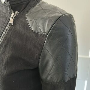 Classy Moto Style Jacket by Ralph Lauren. Combines denim and faux leather creating a very stylized jacket.