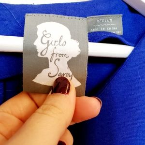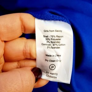 Anthropologie Girls from Savoy Ponte Sapphire Blue Dress Black Velvet Belted Waist