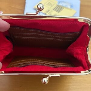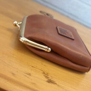 Dooney & Bourke British Tan Florentine Large Framed Kiss Lock Coin Purse Wallet