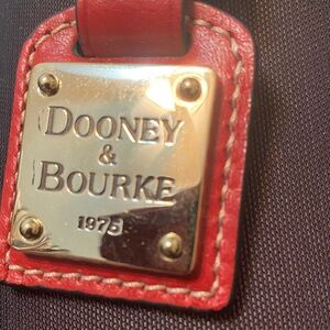 Elegant red leather key fob/purse charm with gold-tone accents from the “1975 Collection”. Features Dooney & Bourke branded gold tone hardware and genuine leather strap and backing. Color is a vibrant chili pepper red. Preowned and does have some minor surface scratch on logo (see pic) but no tarnishing and in otherwise very good condition. From NS home. See pics for details.