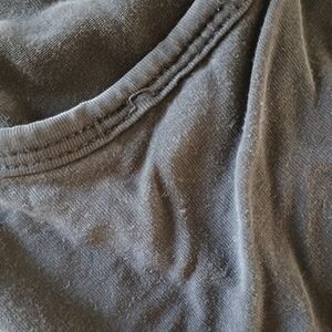 Latched Mama causal floor-length maxi dress for nursing. Black. Used condition, with two small flaws: a loose stitch at neck and 3 pinholes toward the bottom of front of skirt.