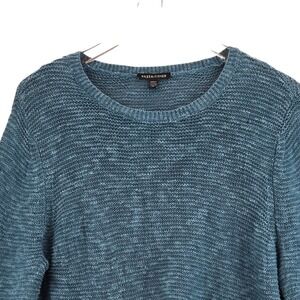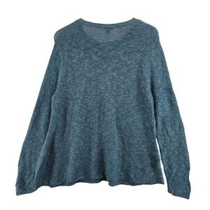 Eileen Fisher Knit Sweater Aqua Blue Crew Neck Large Organic Linen Cotton