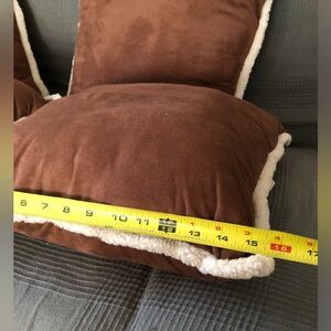 Add a touch of elegance with these Woolrich suede brown pillows. Soft cream edging enhances their charm. Accent a cabin retreat, farmhouse, den retreat, or any other room.