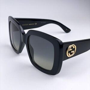 New GUCCI GG0141SN 001 Black Gold Logo Gray Gradient Square Women Sunglasses