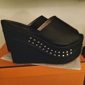 Size 6. new , very cool platform sandals with stud detailing. black very tall. lol but comfortable. all sales are final. never worn, only tried them on around the house lol
