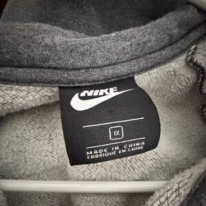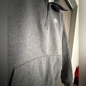 Comfortable grey sweatshirt with quarter-zip. Nike logo on chest. Front pouch pocket.