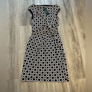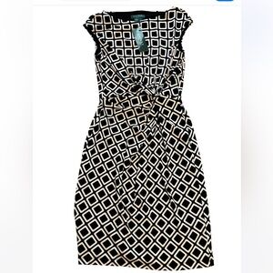 NWT Ralph Lauren Sleeveless Dress in Black and White Pattern. Twist Waist