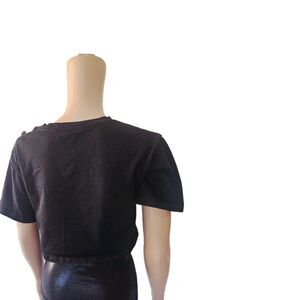 This women's top in size small is a stylish addition to any wardrobe. Made from 100% cotton in a classic black color, this pullover blouse features a round neckline and a regular fit, perfect for casual occasions during the summer and spring seasons. With its basic style and vintage charm, this top is easy to care for with its machine washable fabric and is sure to become a versatile and timeless staple in your closet.
