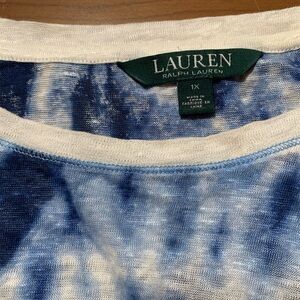 Lauren Ralph Lauren nearly new! Embrace a casual yet stylish look with this blue tie-dye women's top. 100% linen, but very soft and stretchy. Perfect for any occasion, this top offers comfort and a trendy design. I think I only wore this once.