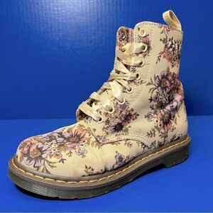 Dr. Martens Womens Beckett 'Wild Rose' Beige Canvas Boots 7