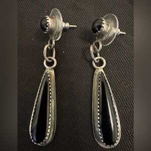 Vintage Sterling Black Onyx Tear Drop Earrings