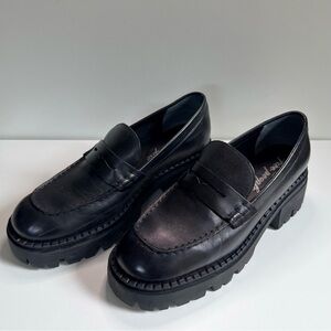 Free People Womens Loafers Shoes Lyra Lugged Sole Platform Black Leather EU 38.5 US 8
