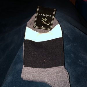 2 pairs of brand new trouser socks that are baby blue, black, grey, and white $4 for the pair