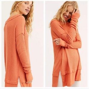 We the free oversized orange coral waffle knit thermal lounge top
