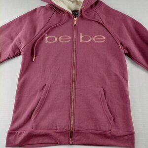Bebe Foil Logo Fur Hood Full Zip Fleece Sweatshirt Women's M Hawthorn Rose